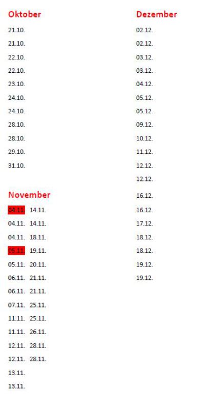 Die Liste wird jeden Tag gegen 20:00 Uhr aktualisiert.